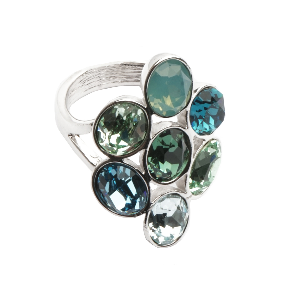 Молочно-зеленый, бирюзовый, голубой, нефритовый- микс ясных оттенков кристаллов Swarovski в минималистичной форме.