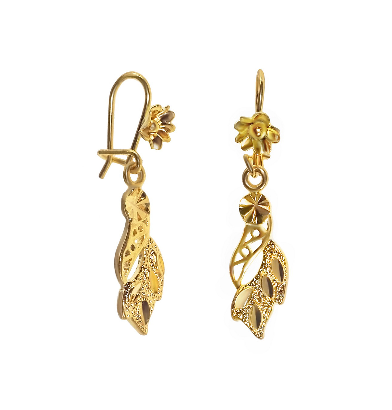 Волшебные серьги без вставок с позолотой, они богаты собственным уникальным блеском. Живописная тонкость деталей и роскошная рельефность, изобилие дорогого металла. Украшение со сложным женственным дизайном дополнит выбранный наряд и заставит чувствовать себя восхитительной.