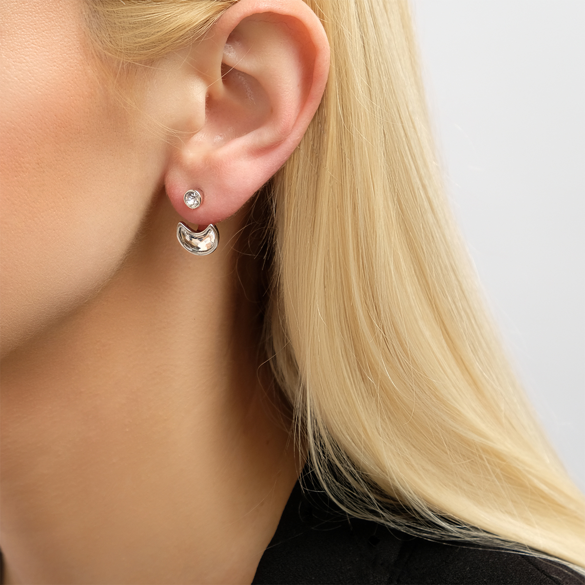 Добавляя к своему образу серьги-гвоздики Логр в форме полумесяца девушка точно знает - красота в деталях.
