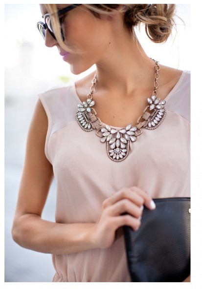 V-образный вырез. Такой вырез сам по себе смотрится нарядно и самодостаточно, но можно сделать его более оригинальным, дополнив аккуратным Y-образным украшением: тонкими цепочками, нитью из небольших жемчужин или стразов, кулоном-подвеской, делающей игривый акцент на линии выреза. Ошибкой в этом случае будет использование массивных, аляповатых украшений. Выбирая между бусами в африканском стиле и отсутствием аксессуаров, остановитесь на втором варианте.