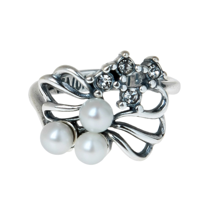 Чем необычнее и оригинальнее – тем лучше. Помимо жемчуга, в таком перстне могут сиять другие камни или стразы, не стоит гнаться за «чистотой» дизайна. А еще не нужно бояться нарочитости в украшениях: если раньше бижутерию маскировали под драгоценности, то сейчас ювелирные украшения выглядят так, будто это яркая карнавальная бижутерия! Колец на руке может быть несколько, даже если все они крупные и активные. Кстати, барочный жемчуг используют и для колец, хотя не так часто, как для сережек и ожерелий.