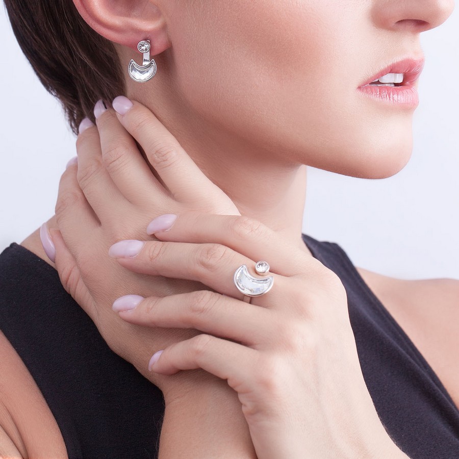 Добавляя к своему образу серьги-гвоздики Логр в форме полумесяца девушка точно знает - красота в деталях.
